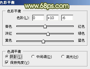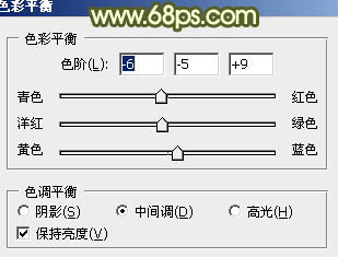 5、创建色彩平衡调整图层,对阴影、中间调、高光进行调整,参数设置如图15 - 17,效果如图18。这一步给图片增加一些褐色。