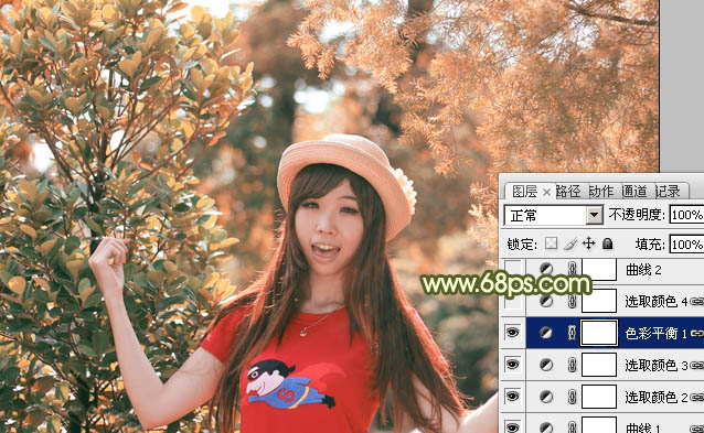Photoshop给树林中的人物加上漂亮的橙绿色(5)