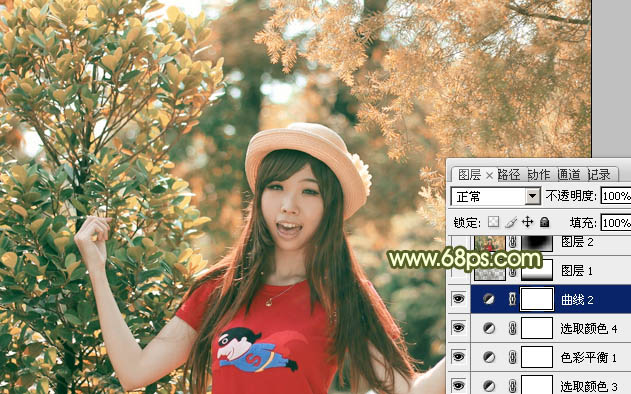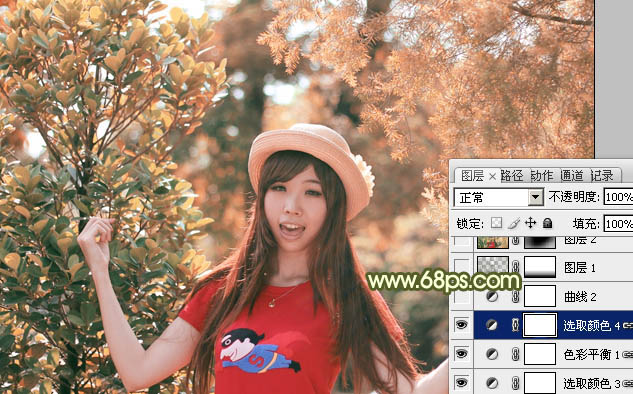 Photoshop给树林中的人物加上漂亮的橙绿色(6)