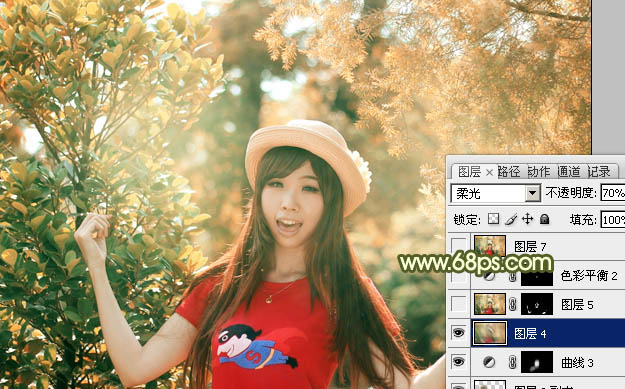 Photoshop给树林中的人物加上漂亮的橙绿色(8)