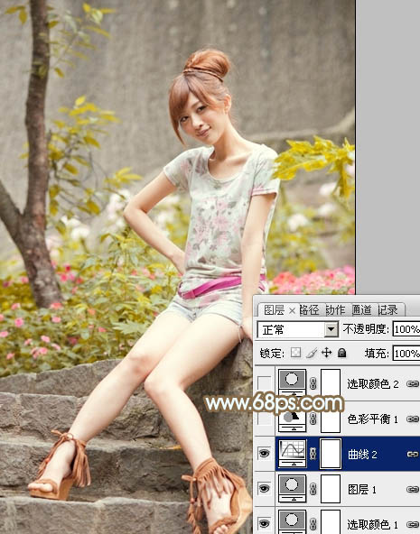 Photoshop给花草边的美女加上柔和的黄褐色(3)