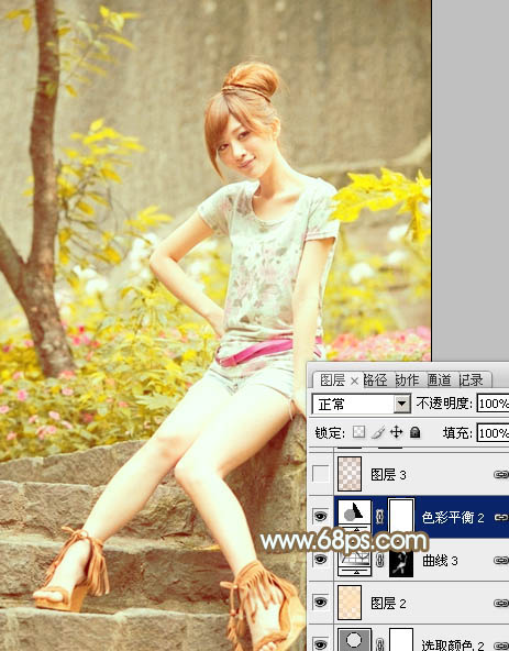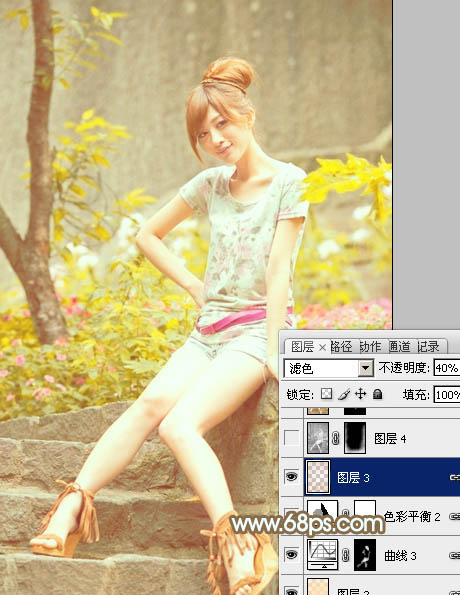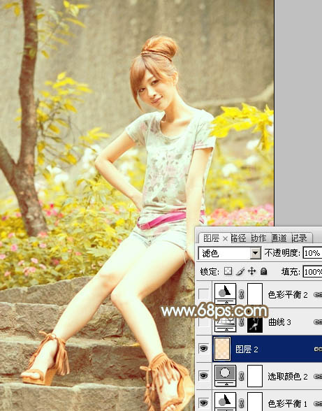 Photoshop给花草边的美女加上柔和的黄褐色(5)