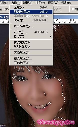 8. 完成模糊处理后,取消选择区域。可以从菜单里取消,如图08所示,也可以直接按“Ctrl+D”。