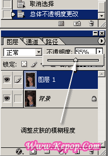 11. 如图11就是选择了55%不透明度后的画面,注意一下皮肤,现在显得光滑但又不失真。
