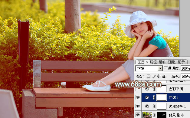 Photoshop给公园美女加上流行的韩系黄褐色(3)