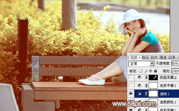 Photoshop给公园美女加上流行的韩系黄褐色(5)