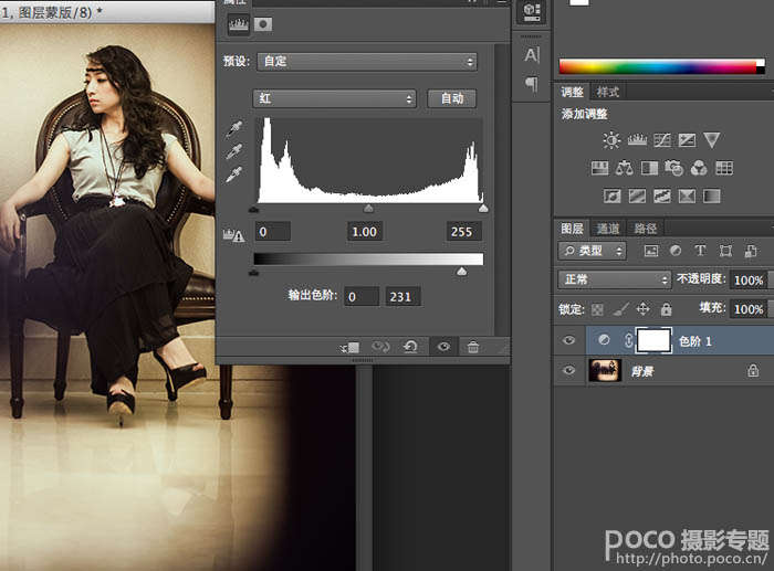 1、我们看到原片偏红,画面过实,还可以虚幻一点,色阶-红,数值如图。
