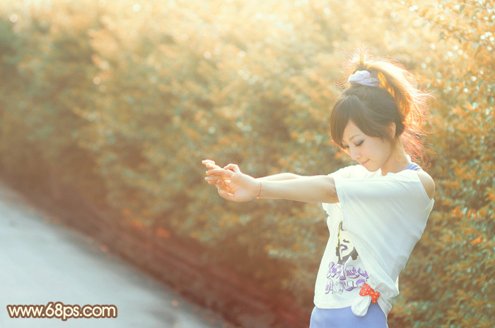 素材图片基本上以绿色为主,转为暖色的时候,只需要把绿色转为橙黄色,并保留暗部的青绿色。再把整体调淡调柔和即可。