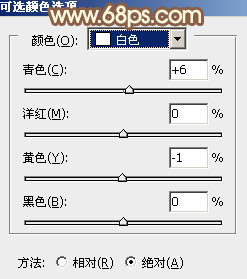 4、创建可选颜色调整图层,对红、黄、绿、白进行调整,参数设置如图16 - 19,效果如图20。这一步给图片增加橙黄色。