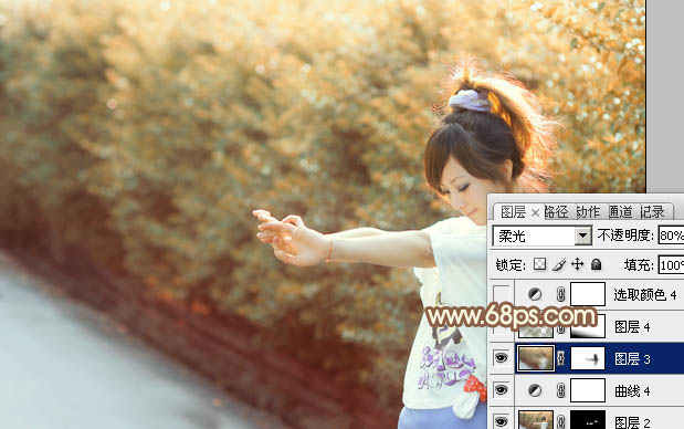 Photoshop给绿树边的美女加上柔和的橙黄色(8)