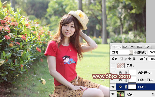 Photoshop给外景红衣人物加上淡美的红黄色(2)