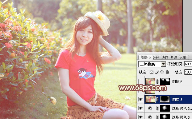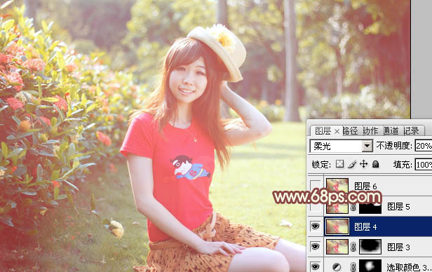 Photoshop给外景红衣人物加上淡美的红黄色(7)