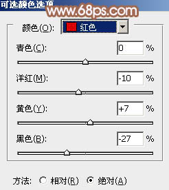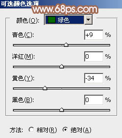 2、创建可选颜色调整图层,对红、黄、绿、黑进行调整,参数设置如图6 - 9,效果如图10。这一步主要把图片中的红色调淡。