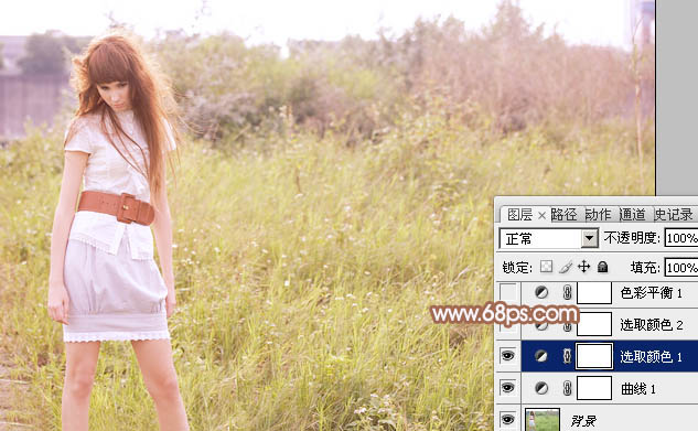 Photoshop给草地人物图片加上淡美的红黄色(3)