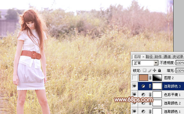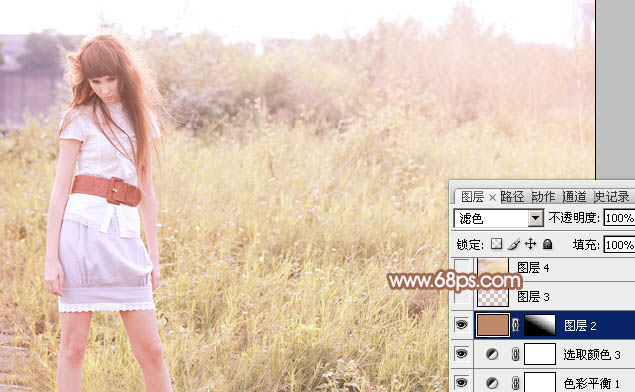 Photoshop给草地人物图片加上淡美的红黄色(5)