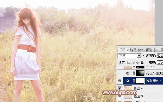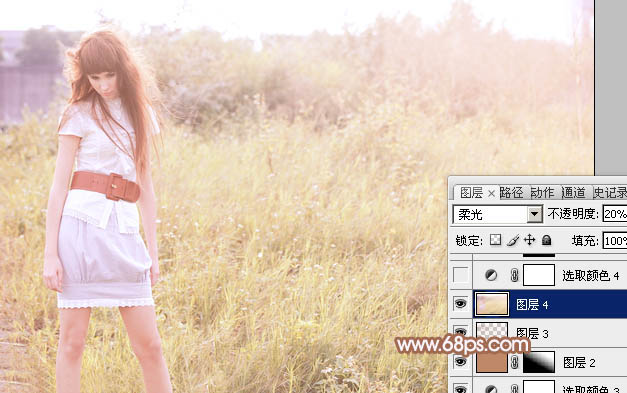 Photoshop给草地人物图片加上淡美的红黄色(6)