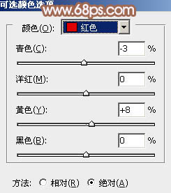 9、创建可选颜色调整图层,对红,白进行调整,参数设置如图23,24,确定后把图层不透明度改为:20%,效果如图25。这一步给图片增加淡黄色。