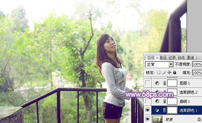 Photoshop给公园美女加上清爽的蓝绿色(2)