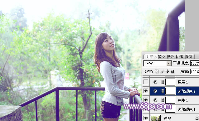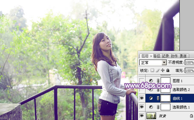 Photoshop给公园美女加上清爽的蓝绿色(3)