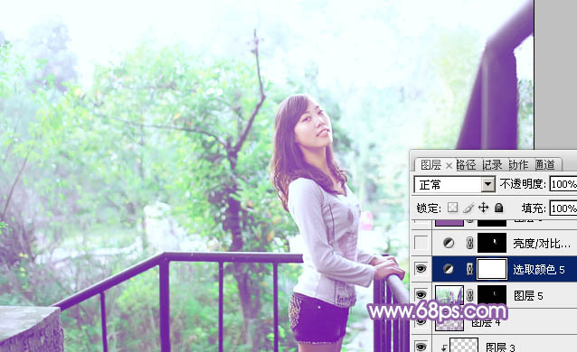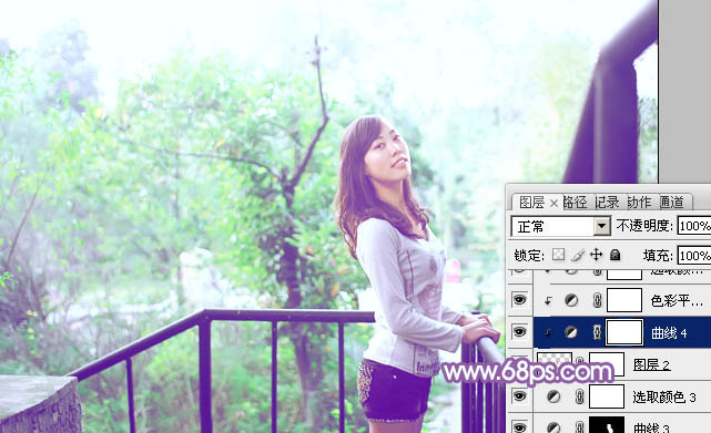 Photoshop给公园美女加上清爽的蓝绿色(6)