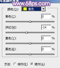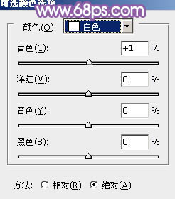 10、创建可选颜色调整图层,对黄、蓝、白进行调整,参数设置如图22 - 24,效果如图25。这一步主要给图片增加蓝紫色。