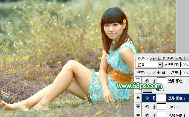 Photoshop给野草中的人物加上柔和的小清新黄绿色(4)