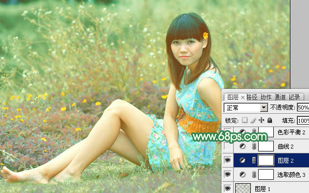 7、按Ctrl + J 把当前可选颜色调整图层复制一层,不透明度改为:50%,效果如下图。