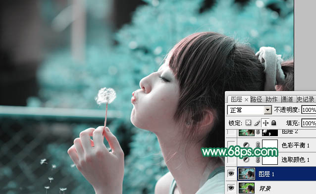 PS利用通道替换给外景美女加上甜美的青绿色(2)