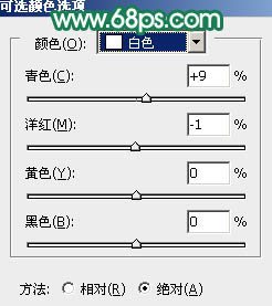 2、创建可选颜色调整图层,对红、青、白进行调整,参数设置如图2 - 4,效果如图5。这一步把背景部分的青色转为青绿色,红色转为橙黄色。