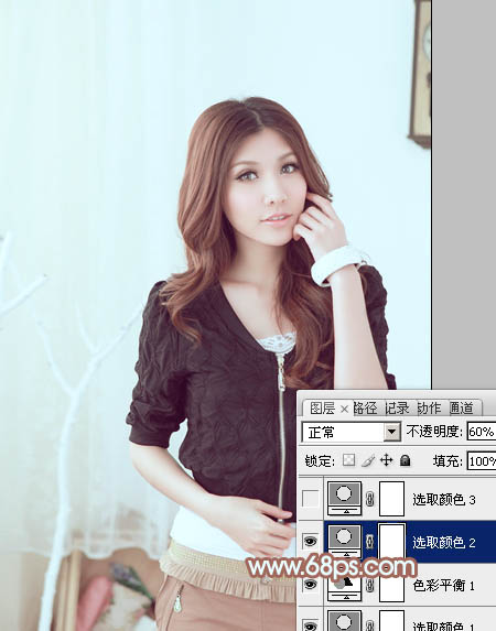 Photoshop给室内美女加上甜美的淡蓝色(4)