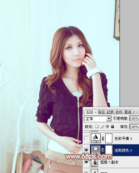 Photoshop给室内美女加上甜美的淡蓝色(7)