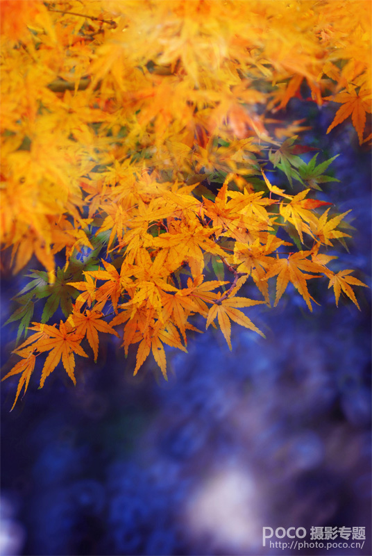 看似简单的秋叶图片,处理起来还是有很多讲究的。首先叶子颜色比较统一,需要多复制几层分别调成不同的颜色,然后用蒙版或橡皮控制这些叶子显示区域增加叶子层次。处理好后还需要用滤镜等增加整体梦幻度,局部还可以用画笔等增加烟雾等丰富画面。