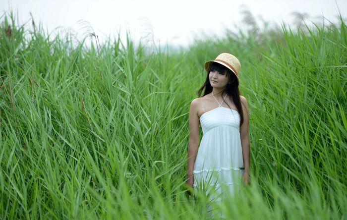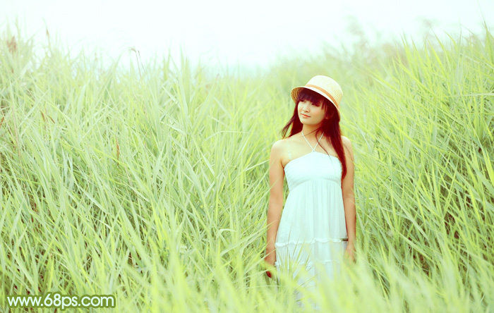 素材图片有点偏暗,不过整体非常清爽。处理的时候可以适当把背景颜色调淡,并加入一些淡黄色及淡青色,。人物部分再适当调红润一点。这样画面会甜美很多。