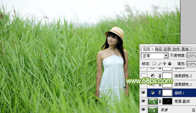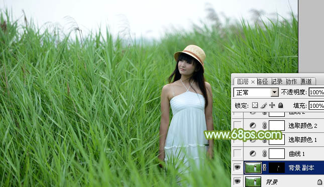 Photoshop给芦苇中的美女加上甜美的淡绿色(2)
