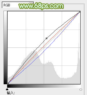 2、创建曲线调整图层,对RGB、红、蓝通道进行调整,参数设置如图2,效果如图3。这一步主要把图片调亮,并增加一些橙红色。
