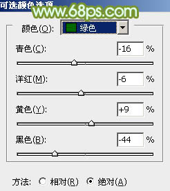 3、创建可选颜色调整图层,对红、黄、绿、白、黑进行调整,参数设置如图4 - 8,效果如图9。这一步适当增加黄色及绿色亮度。