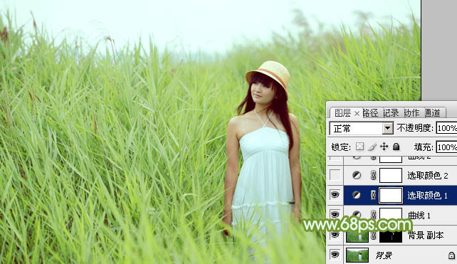 Photoshop给芦苇中的美女加上甜美的淡绿色(3)