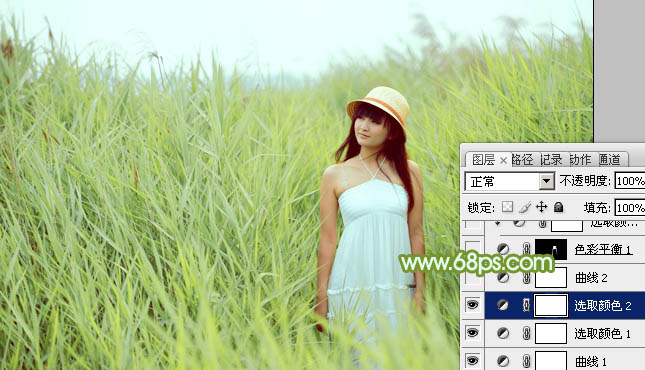 Photoshop给芦苇中的美女加上甜美的淡绿色(4)