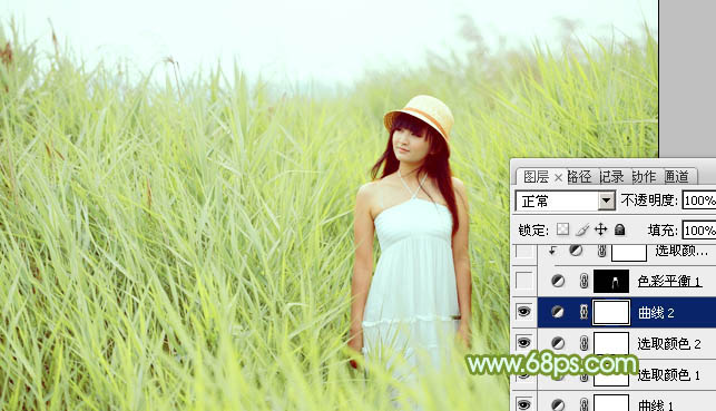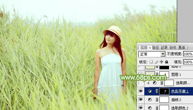 Photoshop给芦苇中的美女加上甜美的淡绿色(5)