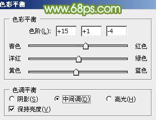 6、创建色彩平衡调整图层,对中间调,高光进行调整,参数设置如图16,17,确定后把蒙版填充黑色,用白色画笔把人物脸部及肤色部分擦出来,效果如图18。这一步微调人物肤色。