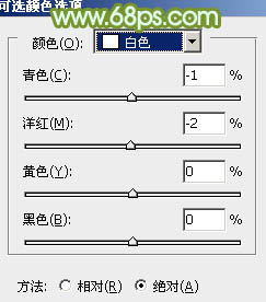 7、创建可选颜色调整图层,对红,白进行调整,参数设置如图19,20,确定后按Ctrl + Alt + G 创建剪贴蒙版,效果如图21。这一步同样也是调整人物肤色。