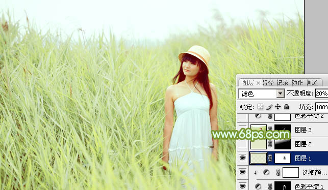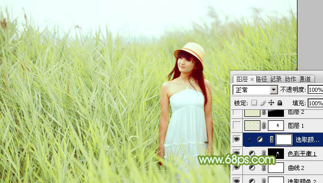 Photoshop给芦苇中的美女加上甜美的淡绿色(6)