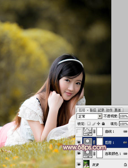 Photoshop给草地上的美女加上柔美的橙紫色(2)