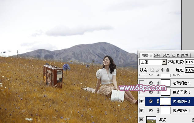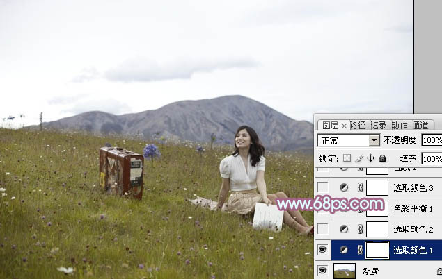 Photoshop给草地美女加上淡淡的蓝红色(2)