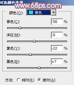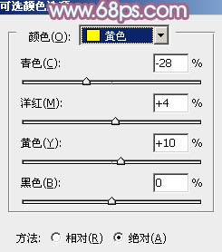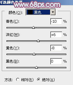 4、创建可选颜色调整图层,对黄、青、蓝、白、中性、黑进行调整,参数设置如图10 - 15,效果如图16。这一步给图片增加橙黄色。