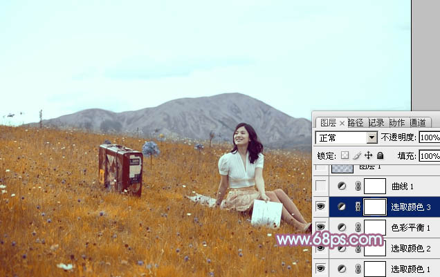 Photoshop给草地美女加上淡淡的蓝红色(3)