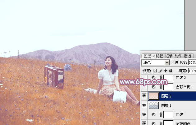 7、按Ctrl + Alt + 2 调出高光选区,新建一个图层填充淡红色:#EDCFC3,混合模式改为“滤色”,不透明度改为:30%,效果如下图。这一步给图片高光部分增加淡红色。