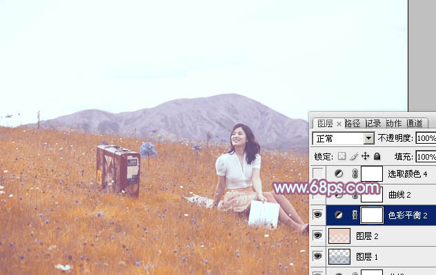 Photoshop给草地美女加上淡淡的蓝红色(5)