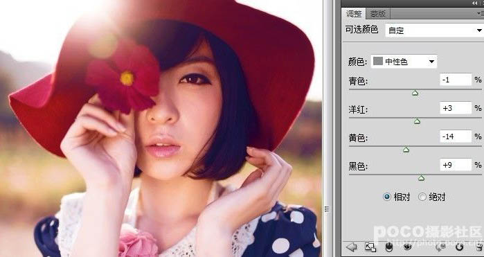3、在美术中,无论是素描还是色彩,第一步都是确定大体关系,之后才是局部调整。PS中有很多局部调色的办法,我一直采用的是可选颜色,因为可选颜色针对性强,对画面中局部颜色的掌控相对准确些。这个步骤很关键,需要多次选择画面当中的颜色,进行多次调整。