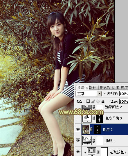 Photoshop给树林美女加上柔和的古典褐色调(6)
